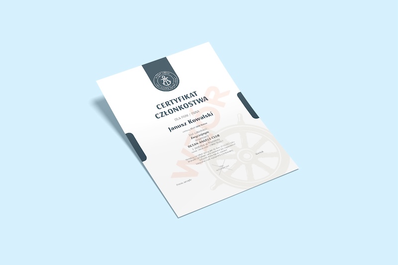 Certyfikat dedykowany dla osób fizycznych podmiotów gospodarczych oraz organizacji pozarządowych posiadających osobowość prawną będących właścicielem jednostki pływającej zgłoszonej do certyfikacji.